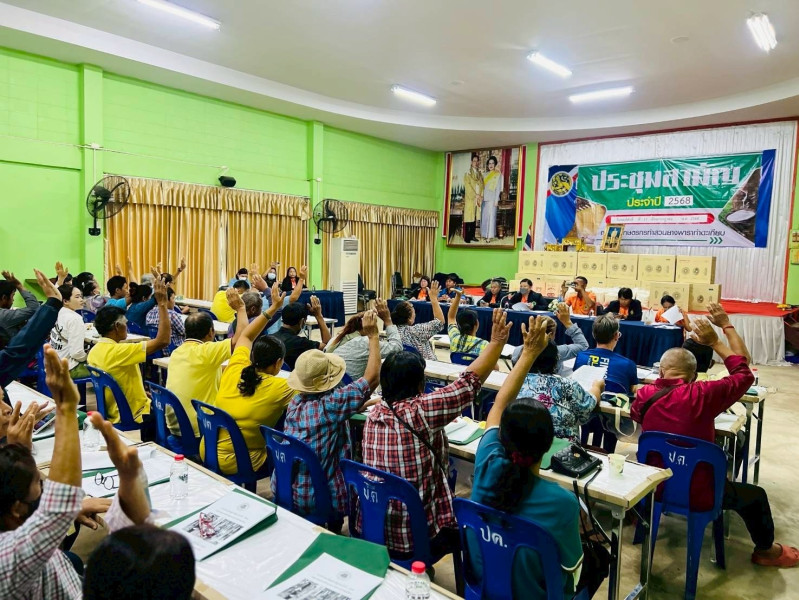 วันพฤหัสบดีที่ 17 กรกฎาคม 2568 นางสาวสุภาลักษณ์ ณ เชียงใหม่ ผู้อำนวยการกลุ่มส่งเสริมสหกรณ์ 4 เข้าร่วมประชุมใหญ่สามัญประจำปี 2568 กลุ่มเกษตรกรทำสวนยางพาราท่าตะเกียบ สำหรับปีบัญชีสิ้นสุด 31 มีนาคม 2568 ได้มีการแนะนำส่งเสริมให้สมาชิกตระหนักถึงความสำคัญ บทบาทหน้าที่ของสมาชิกและการมีส่วนร่วมในการทำธุรกิจกับกลุ่มเกษตรกร และรักษาระดับชั้นความเข้มแข็งของกลุ่มเกษตรกรฯ ณ หอประชุมที่ว่าการอำเภอท่าตะเกียบ