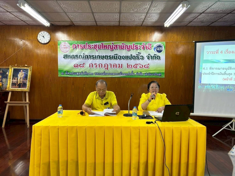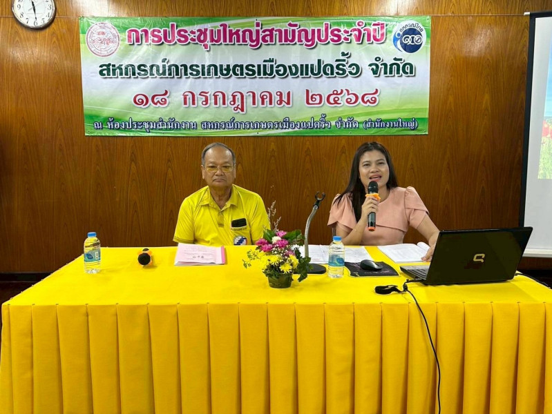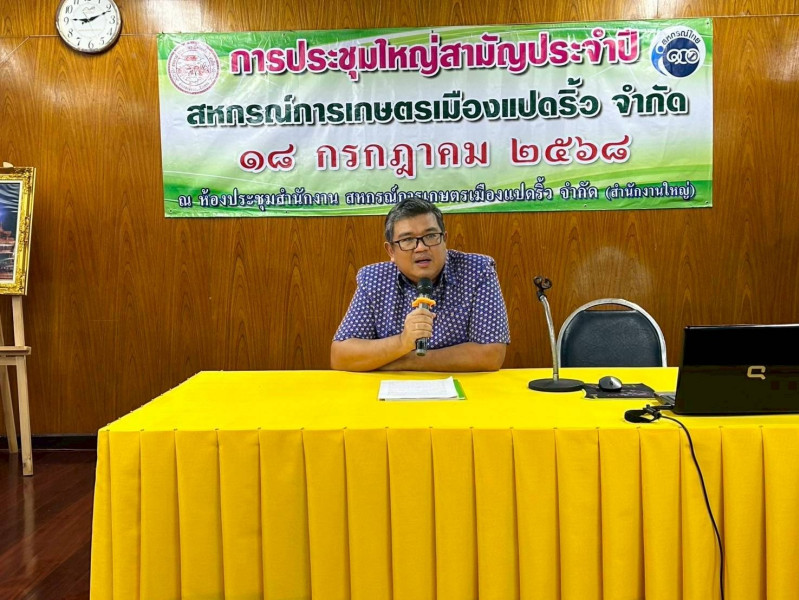 วันศุกร์ที่ 18 กรกฎาคม 2568 นายกัณวีย์ บุญญพันธุ์ สหกรณ์จังหวัดฉะเชิงเทรา นางสาวศศิวิมล ธรรมกิรติ ผู้อำนวยการกลุ่มส่งเสริมสหกรณ์ 1 พร้อมด้วยเจ้าหน้าที่กลุ่มส่งเสริมสหกรณ์ 1 เข้าร่วมประชุมใหญ่สามัญประจำปี 2568 ของสหกรณ์การเกษตรเมืองแปดริ้ว จำกัด ณ ห้องประชุมสำนักงานใหญ่ สหกรณ์การเกษตรเมืองแปดริ้ว จำกัด สำหรับปีบัญชีสิ้นสุด 31 มีนาคม 2568 สหกรณ์มีระดับชั้นความเข้มแข็งของสหกรณ์ อยู่ในระดับชั้น 1 พร้อมทั้งมีการติดตามผลการปฏิบัติงานตามแผนกลยุทธ์ของสหกรณ์ และมีมติแก้ไขเพิ่มเติมข้อบังคับของสหกรณ์เพื่อให้เป็นไปตามกฎกระทรวง กำหนดลักษณะ วัตถุประสงค์ และขอบเขตแห่งการดำเนินกิจการของสหกรณ์แต่ละประเภทที่จะรับจดทะเบียน พ.ศ. 2567 ทั้งนี้ได้แนะนำ แนวทางพัฒนาสหกรณ์ ในด้านการยกระดับการบริหารจัดการด้วยเทคโนโลยี การพัฒนาผลิตภัณฑ์และบริการใหม่ที่ตอบสนองความต้องการของสมาชิก เพื่อเสริมสร้างความรู้ด้านเศรษฐกิจพอเพียงและการวางแผนการเงินในครัวเรือนแก่สมาชิกและส่งเสริมความร่วมมือกับเครือข่ายสหกรณ์และภาคีในพื้นที่เพื่อสร้างความเข้มแข็งอย่างยั่งยืน