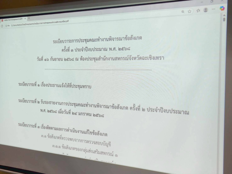 วันที่ 16 กันยายน 2568 นายกัณวีย์ บุญญพันธุ์ สหกรณ์จังหวัดฉะเชิงเทรา มอบหมายให้นางสาวทวีวรรณ อุพิณ ผู้อำนวยการกลุ่มจัดตั้งเเละส่งเสริมสหกรณ์ เป็นประธานในการประชุมคณะทำงานพิจารณาข้อสังเกต ครั้งที่ 3 ประจำปีงบประมาณ พ.ศ. 2568 เพื่อกำกับและติดตามการแก้ไขข้อสังเกตที่ตรวจพบจากการสอบบัญชีและข้อสังเกตที่ตรวจพบจากการตรวจการสหกรณ์ รวมทั้งพิจารณาจำแนกข้อสังเกตที่ตรวจพบจากการสอบบัญชีเพื่อประกอบการพิจารณาออกคำแนะนำให้แก่สหกรณ์และกลุ่มเกษตรกร ณ ห้องประชุมสำนักงานสหกรณ์จังหวัดฉะเชิงเทรา