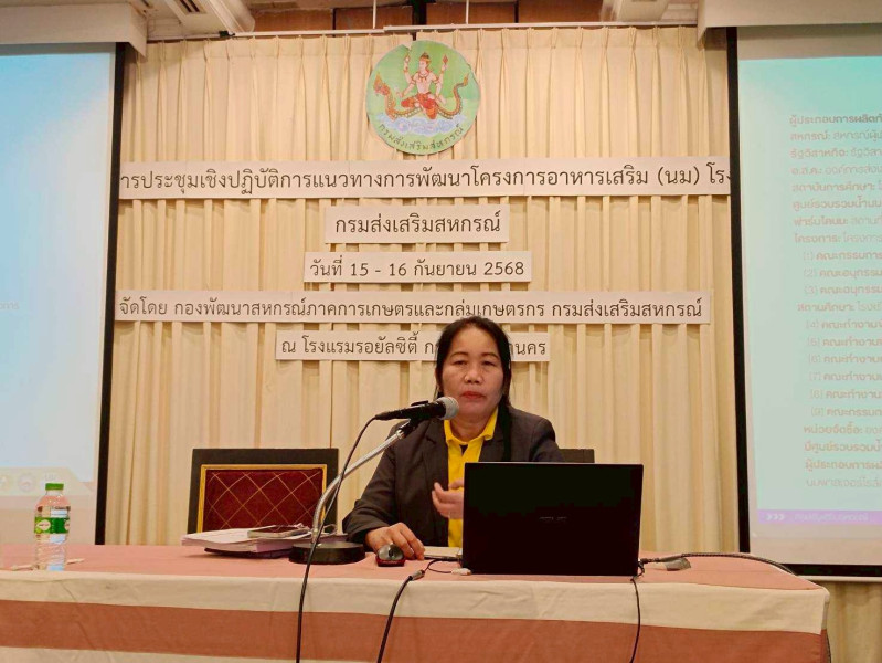 วันที่ 15 - 16 กันยายน 2568 น.ส.ศิริลักษณ์ ธรรมประไพ นักวิชาการสหกรณ์ชำนาญการพิเศษ กลุ่มส่งเสริมและพัฒนาธุรกิจสหกรณ์ เข้าประชุมเชิงปฏิบัติการแนวทางการพัฒนาโครงการอาหารเสริม (นม) โรงเรียน กรมส่งเสริมสหกรณ์ ณ โรงแรมรอยัลซิตี้ กรุงเทพมหานครฯ วัตถุประสงค์เพื่อสร้างความเข้าใจในโครงสร้าง วิธีการดำเนินงาน และกระบวนการดำเนินงานตามหลักเกณฑ์ฯ รวมถึงการติดตามและประเมินผลการดำเนินงานโครงการอาหารเสริม (นม) โรงเรียน และ กำหนดแนวทางการบริหารจัดการโครงการอาหารเสริม (นม) โรงเรียน แลกเปลี่ยนเรียนรู้ แนวทางแก้ไขปัญหาอุปสรรค โดยมี นายวิศิษฐ์ ศรีสุวรรณ์ อธิบดีกรมส่งเสริมสหกรณ์ เป็นประธานในพิธีเปิดการประชุม