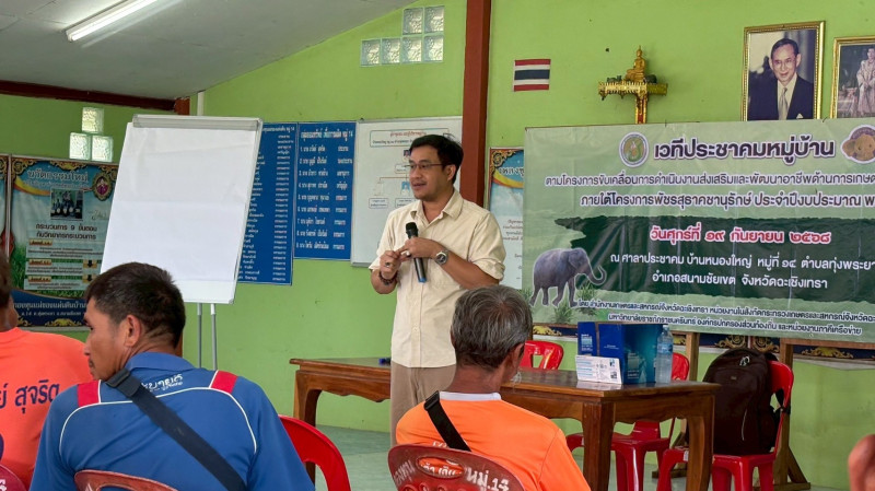 วันที่ 19 กันยายน 2568 นางสาวสมหญิง รูปประดิษฐ นักวิชาการสหกรณ์ชำนาญการ พร้อมด้วยนางสาวชินานุตม์ สงยัง นักวิชาการสหกรณ์ปฏิบัติการ กลุ่มจัดตั้งเเละส่งเสริมสหกรณ์ เข้าร่วมเวทีประชาคมหมู่บ้านตามโครงการขับเคลื่อนการดำเนินงานส่งเสริมและพัฒนาอาชีพด้านการเกษตรจังหวัดฉะเชิงเทรา ภายใต้โครงการพัชรสุธาคชานุรักษ์ ประจำปีงบประมาณ พ.ศ. 2568 เพื่อรับฟังความความคิดเห็น วิเคราะห์ศักยภาพ สภาพปัญหา และความต้องการของเกษตรกรในพื้นที่โครงการพัชรสุธาคชานุรักษ์ ประจำปีงบประมาณ พ.ศ. 2568 และระดมความคิดเสนอเเผนงาน/โครงการ/กิจกรรมของหมู่บ้าน ณ ศาลาประชาคมบ้านหนองใหญ่ หมู่ที่ 14 ตำบลทุ่งพระยา อำเภอสนามชัยเขต จังหวัดฉะเชิงเทรา