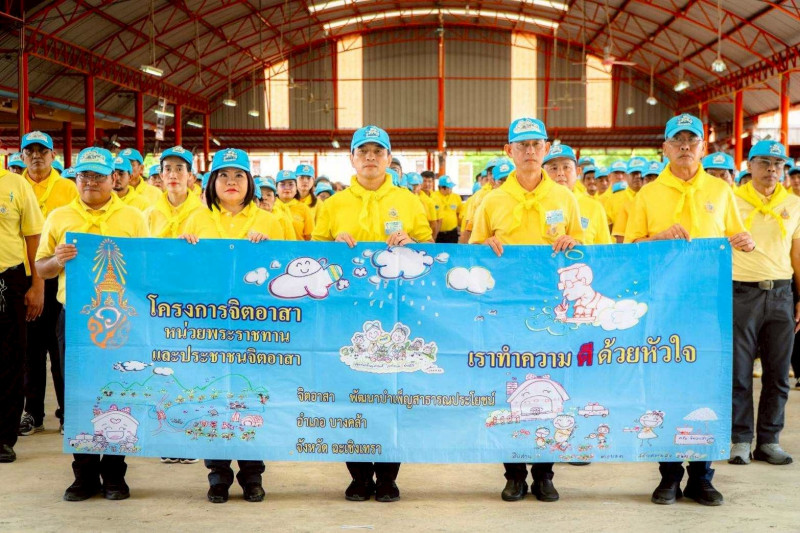 โดยมี นายสันติ รังษิรุจิ ผู้ว่าราชการจังหวัดฉะเชิงเทรา เป็นประธานในพิธีเปิดกิจกรรมจิตอาสาพัฒนาฯ