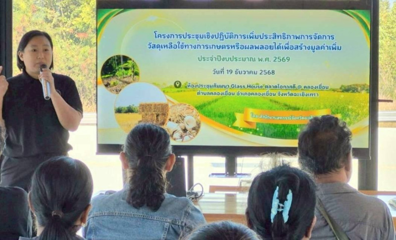 วันที่ 19 ธันวาคม 2568 นางสาวรพีพร ตันประภาส นักวิชาการสหกรณ์ชำนาญการ และนางสาวสุภัค อัศววิทยานันท์ นักวิชาการสหกรณ์ชำนาญการ กลุ่มส่งเสริมและพัฒนาธุรกิจสหกรณ์ จัดโครงการประชุมเชิงปฏิบัติการเพิ่มประสิทธิภาพการจัดการวัสดุเหลือใช้ทางการเกษตรหรือผลพลอยได้เพื่อสร้างมูลค่าเพิ่ม ปีงบประมาณ พ.ศ. 2569 ณ ห้องประชุมสัมมนา Glass House ตลาดโอกาสดี @ คลองเขื่อน ตำบลคลองเขื่อน อำเภอคลองเขื่อน จังหวัดฉะเชิงเทรา ผู้เข้าอบรมได้แก่ สมาชิกสหกรณ์การเกษตรคลองเขื่อน จำกัด จำนวน 20 ราย วัตถุประสงค์เพื่อให้ผู้เข้าอบรมได้รับความรู้การจัดการวัสดุเหลือใช้ทางการเกษตร/การพัฒนาผลิตภัณฑ์ใหม่เพื่อสร้างมูลค่าเพิ่ม ความรู้เรื่องการป้องกันและแก้ไขปัญหาฝุ่นละออง ช่วยลดการเผาในพื้นที่เกษตร ลดปัญหาฝุ่นละออง PM2.5 และได้มีการฝึกปฏิบัติการแปรรูปวัสดุเหลือใช้ทางการเกษตร โดยการเพาะเห็ดฟางในตะกร้า เพื่อให้ผู้เข้าอบรมสามารถนำไปสู่การปฏิบัติต่อไป