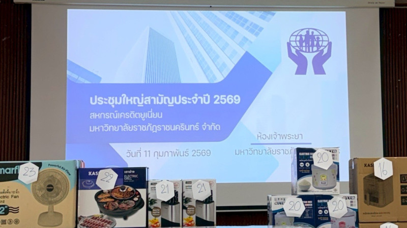 วันที่ 11 กุมภาพันธ์ 2569 นางสาวศศิวิมล ธรรมกิรติ ผู้อำนวยการกลุ่มส่งเสริมสหกรณ์ 1 และนางสาวเกวรินทร์ มณีฤทธิ์ นักวิชาการสหกรณ์ปฏิบัติการ เข้าร่วมประชุมใหญ่สามัญประจำปี 2568 ของสหกรณ์เครดิตยูเนี่ยนมหาวิทยาลัยราชภัฏราชนครินทร์ จำกัด สำหรับปีบัญชีสิ้นสุด 30 พฤศจิกายน 2568 สหกรณ์มีผลการดำเนินงาน มีกำไรสุทธิ 2,498,418.08 บาท ผลการจัดชั้นความเข้มแข็งสหกรณ์ ปี 2568 อยู่ระดับชั้น 1 สหกรณ์มีการจัดสรรกำไรสุทธิเป็นไปตามข้อบังคับและมีการจ่ายเงินปันผลและเงินเฉลี่ยคืนให้กับสมาชิกที่ทำธุรกิจกับสหกรณ์ พร้อมนี้ได้แนะนำส่งเสริมให้สหกรณ์ปฏิบัติให้เป็นไปตามระเบียบ ข้อบังคับเพื่อรักษาระดับชั้นความเข้มแข็งในปี 2569 และแนะนำให้สมาชิกเข้ามาร่วมทำธุรกิจกับสหกรณ์เพิ่มขึ้น และให้ร่วมประชุมใหญ่ทุกครั้งเพื่อเสนอความคิดเห็นและร่วมกันวางแผนการดำเนินงานของสหกรณ์