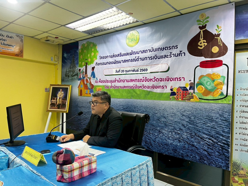 วันที่ 20 กุมภาพันธ์ 2569 นายกัณวีย์ บุญญพันธุ์ สหกรณ์จังหวัดฉะเชิงเทรา เป็นประธานเปิดการประชุมโครงการประชุมเชิงปฏิบัติการเพื่อขับเคลื่อนการยกระดับสหกรณ์นอกภาคการเกษตรสู่ความเข้มแข็ง ณ ห้องประชุมสำนักงานสหกรณ์จังหวัดฉะเชิงเทรา มีกลุ่มเป้าหมาย ประกอบด้วย ผู้แทนสำนักงานตรวจบัญชีสหกรณ์ฉะเชิงเทรา ผู้แทนสหกรณ์ เจ้าหน้าที่สำนักงานสหกรณ์จังหวัดฉะเชิงเทรา จำนวนรวมทั้งสิ้น 34 คน มีวัตถุประสงค์เพื่อพัฒนาและเพิ่มศักยภาพความเข้มแข็งของสหกรณ์และกลุ่มเกษตรกร โดยรักษาสหกรณ์และกลุ่มเกษตรกรให้มีความเข้มแข็งอยู่ในระดับชั้น 1 และสามารถยกระดับชั้น 2 และระดับชั้น 3 สู่ระดับที่ดีขึ้น