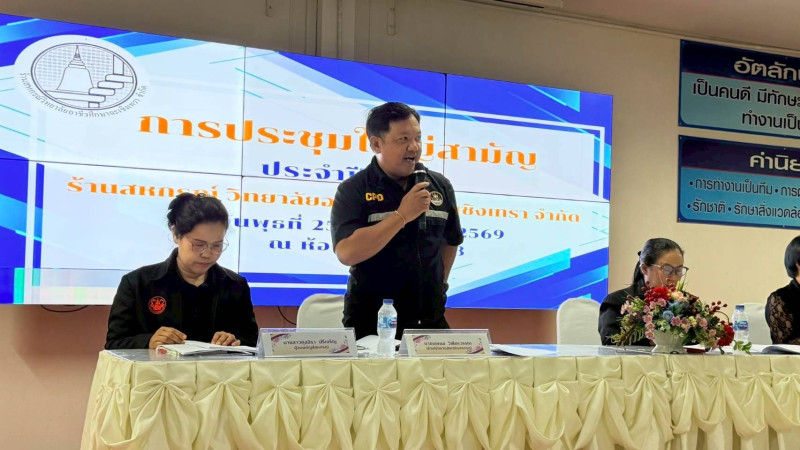วันพุธที่ 25 กุมภาพันธ์ 2569 นางสาวเกวรินทร์ มณีฤทธิ์ นักวิชาการสหกรณ์ปฏิบัติการ และนายนพดล วิเชียรวรรณ เจ้าพนักงานส่งเสริมสหกรณ์ เข้าร่วมประชุมใหญ่สามัญประจำปี 2568 ของร้านสหกรณ์วิทยาลัยอาชีวศึกษาฉะเชิงเทรา จำกัด สำหรับปีบัญชีสิ้นสุด 30 กันยายน 2568 สหกรณ์มีผลการดำเนินงาน มีกำไรสุทธิ 266,813.36 บาท ผลการจัดชั้นความเข้มแข็งสหกรณ์ ปี 2568 อยู่ระดับชั้น 1 สหกรณ์มีการจัดสรรกำไรสุทธิเป็นไปตามข้อบังคับและมีการจ่ายเงินปันผลและเงินเฉลี่ยคืนให้กับสมาชิกที่ทำธุรกิจกับสหกรณ์ พร้อมนี้ได้แนะนำส่งเสริมให้สหกรณ์ปฏิบัติให้เป็นไปตามระเบียบ ข้อบังคับเพื่อรักษาระดับชั้นความเข้มแข็งในปี 2569 และแนะนำให้สมาชิกเข้ามาร่วมทำธุรกิจกับสหกรณ์เพิ่มขึ้น และให้ร่วมประชุมใหญ่ทุกครั้งเพื่อเสนอความคิดเห็นและร่วมกันวางแผนการดำเนินงานของสหกรณ์