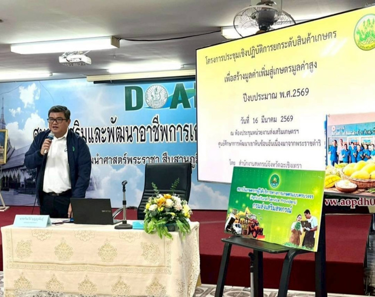 ันที่ 16 มีนาคม 2569 นายกัณวีย์ บุญญพันธุ์ สหกรณ์จังหวัดฉะเชิงเทรา และเจ้าหน้าที่กลุ่มส่งเสริมและพัฒนาธุรกิจสหกรณ์ จัดโครงการประชุมเชิงปฏิบัติการยกระดับสินค้าเกษตรเพื่อสร้างมูลค่าเพิ่มสู่เกษตรมูลค่าสูง ปีงบประมาณ พ.ศ. 2569 ณ ห้องประชุมหน่วยงานส่งเสริมเกษตรฯ ศูนย์ศึกษาพัฒนาเขาหินซ้อนอันเนื่องมาจากพระราชดำริ อำเภอพนมสารคาม จังหวัดฉะเชิงเทรา เป้าหมาย ได้แก่ สหกรณ์ชมรมชาวสวนมะม่วงจังหวัดฉะเชิงเทรา จำกัด ซึ่งเป็นสหกรณ์ตามโครงการสินค้าเกษตรและบริการมูลค่าสูง 1 ท้องถิ่น 1 สินค้าเกษตรมูลค่าสูง วัตถุประสงค์เพื่อให้สมาชิกสหกรณ์ได้รับการถ่ายทอดองค์ความรู้การยกระดับสินค้าเกษตรเพื่อสร้างมูลค่าเพิ่มสู่เกษตรมูลค่าสูงอย่างยั่งยืนและเป็นรูปธรรม และร่วมจัดทำแผนการจัดการต้นทุนการผลิต (แผนรายบุคคล)