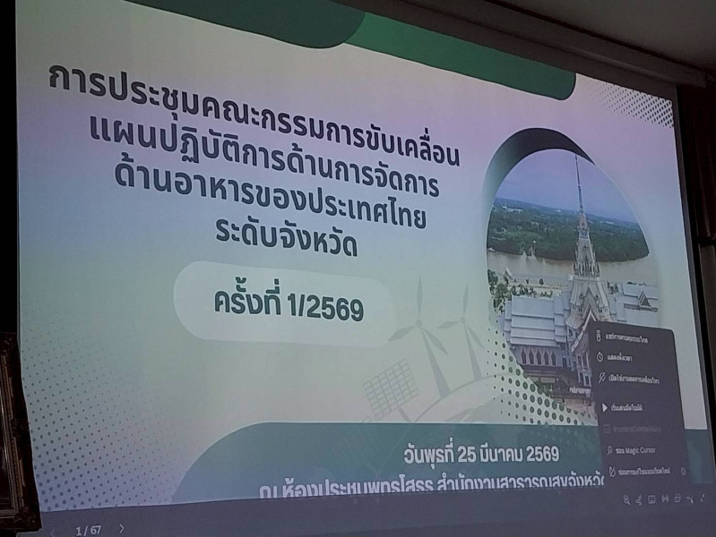 วันที่ 25 มีนาคม 2569 นางสาวศิริลักษณ์ ธรรมประไพ ผู้อำนวยการกลุ่มส่งเสริมและพัฒนาธุรกิจสหกรณ์ เข้าร่วมประชุมคณะกรรมการขับเคลื่อนแผนปฏิบัติการด้านการจัดการอาหารของประเทศไทยระดับจังหวัด ครั้งที่ 1/2569 ณ ห้องประชุมพุทธโสธร สำนักงานสาธารณสุขจังหวัดฉะเชิงเทรา โดยมีนายบุญธรรม ถาวรทัศนกิจ รองผู้ว่าราชการจังหวัดฉะเชิงเทรา เป็นประธานการประชุมฯ วัตถุประสงค์เพื่อรับทราบแนวทางการขับเคลื่อนแผนปฏิบัติการด้านการจัดการด้านอาหารของจังหวัดฉะเชิงเทรา พร้อมทั้งรับทราบผลการดำเนินงานประจำปีงบประมาณ 2568 และร่วมกันพิจารณาให้ความเห็นชอบกิจกรรม/โครงการเพื่อขับเคลื่อนยุทธศาสตร์ด้านการจัดการด้านอาหารของประเทศไทยประจำปีงบประมาณ 2569 เพื่อใช้เป็นกรอบแนวทางในการบูรณาการดำเนินงานของหน่วยงานในระดับพื้นที่ให้เป็นไปในทิศทางเดียวกัน
